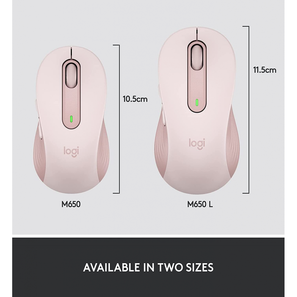 LOGITECH 910-006254, M650 Signature, Rose, Sag El, USB Nano 2,4G Kablosuz, 4000dpi, Optik, 5 Tuslu, 24ay Pil Omru, Sessiz Mouse