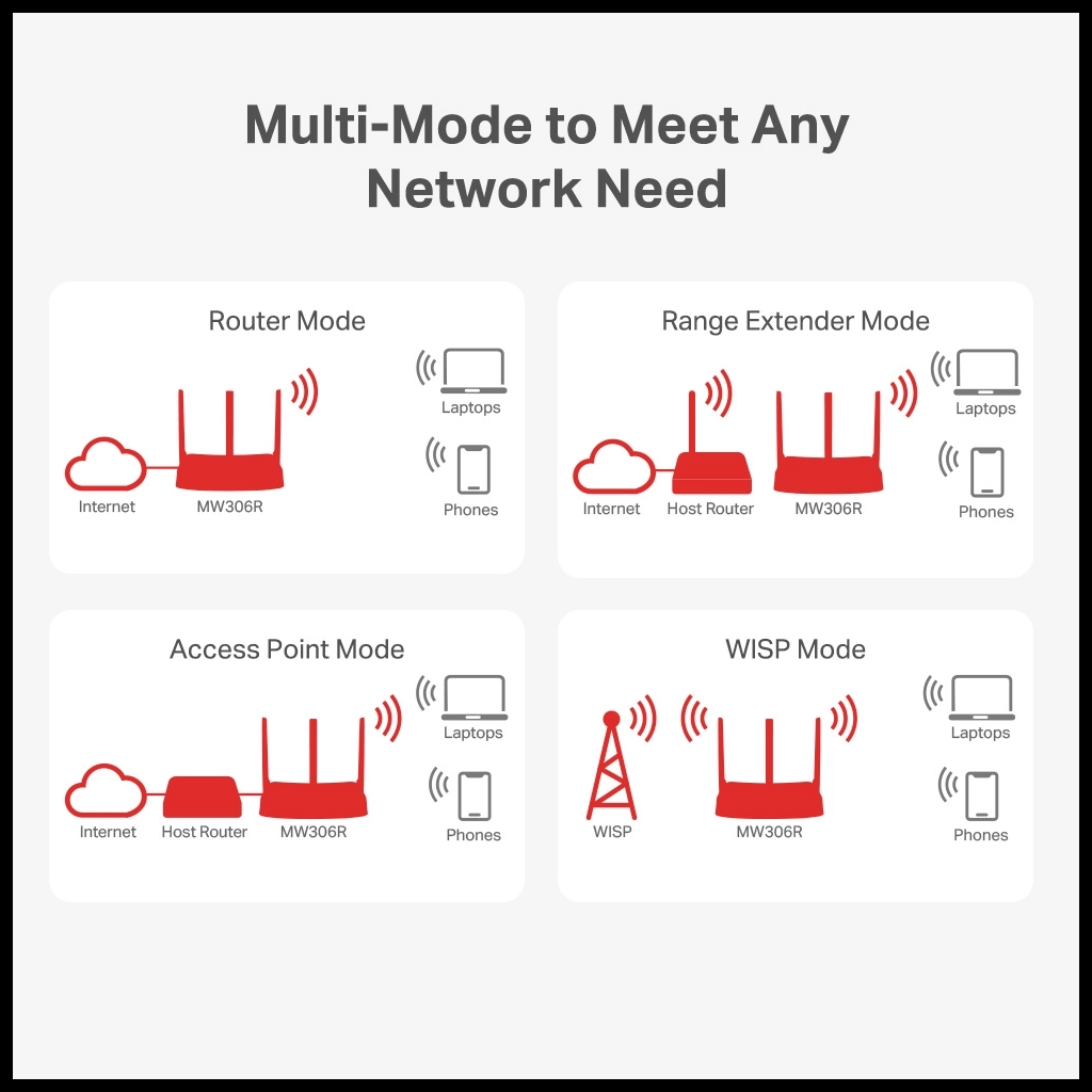 MERCUSYS MW306R 4 Port, 300Mbps, 2,4Ghz WiFi, Masaustu, Megabit, Multi-Mode, Router