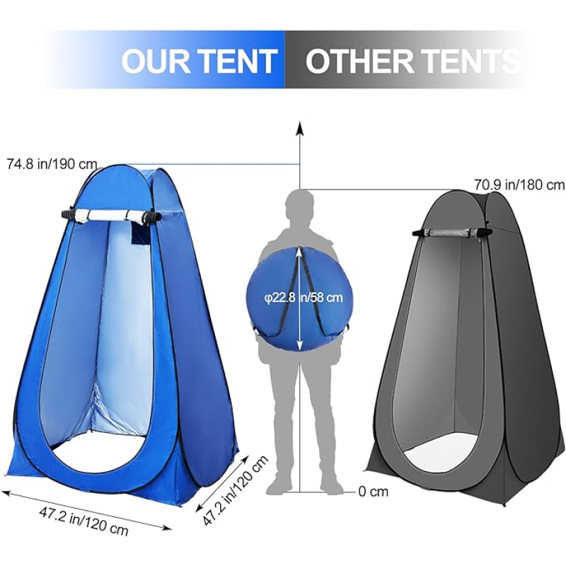 Otomatik kamp giyinme cadiri, kullaniciya kamp deneyimini daha konforlu hale getirmek uzere tasarlanmis cok yonlu bir urundur.