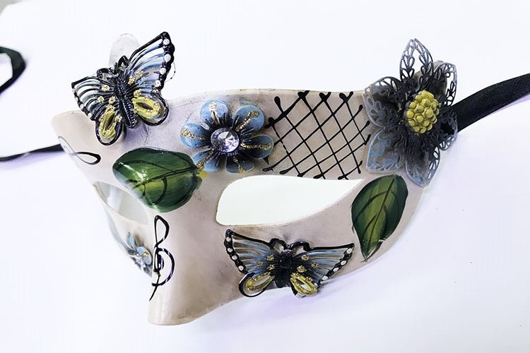 Parti Yaprak Modelli Kelebek Islemeli Yilbasi Parti Maskesi Siyah Renk