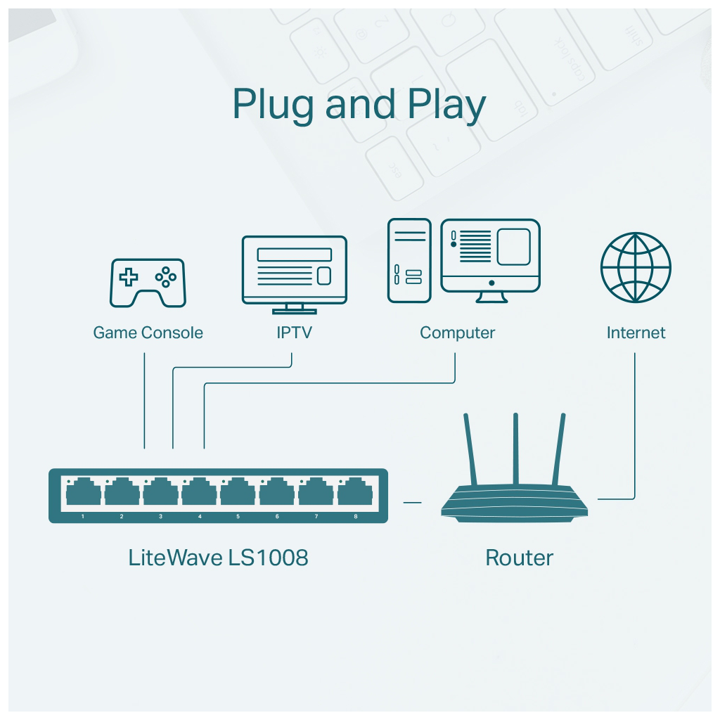 TP-LINK LS1008, Green Tech, 8 Port, MegaBit, Yonetilemez, Masaustu Switch