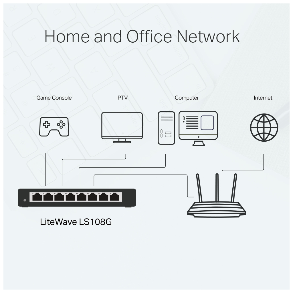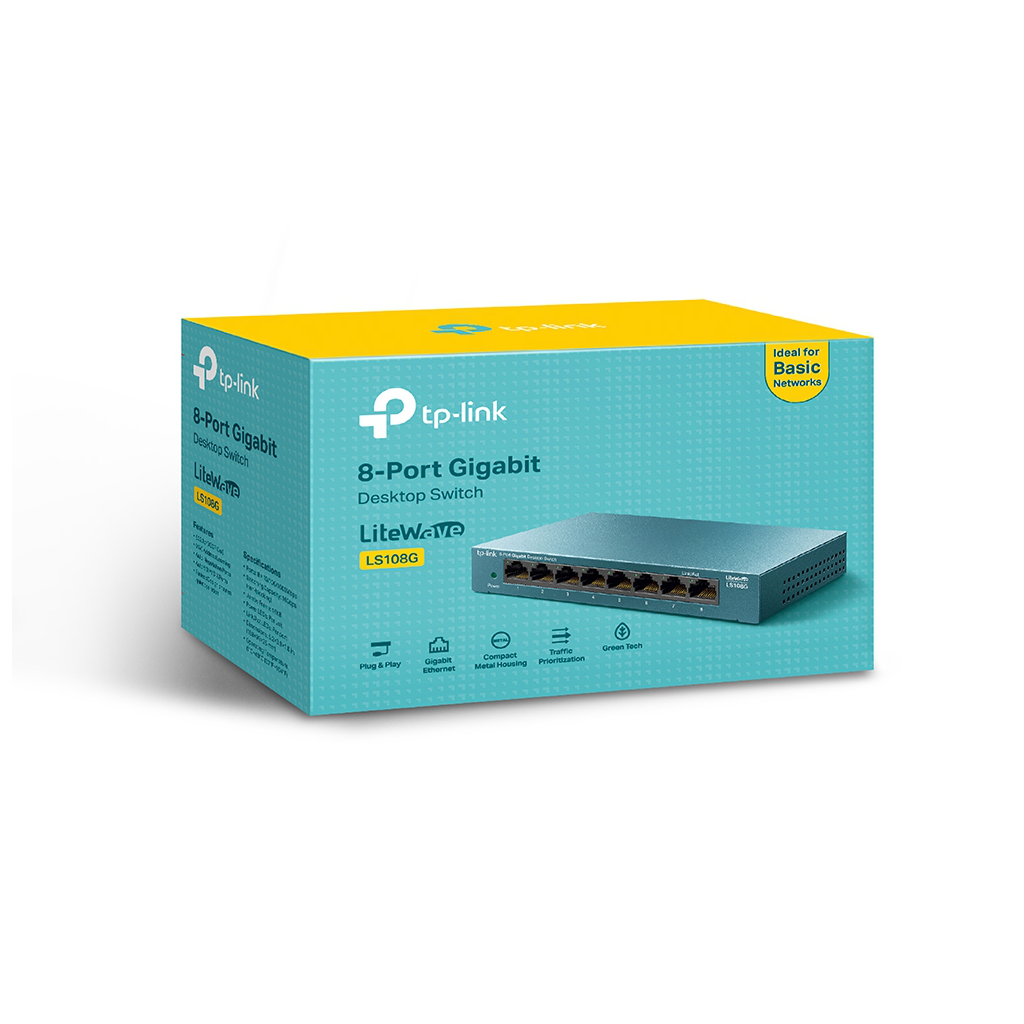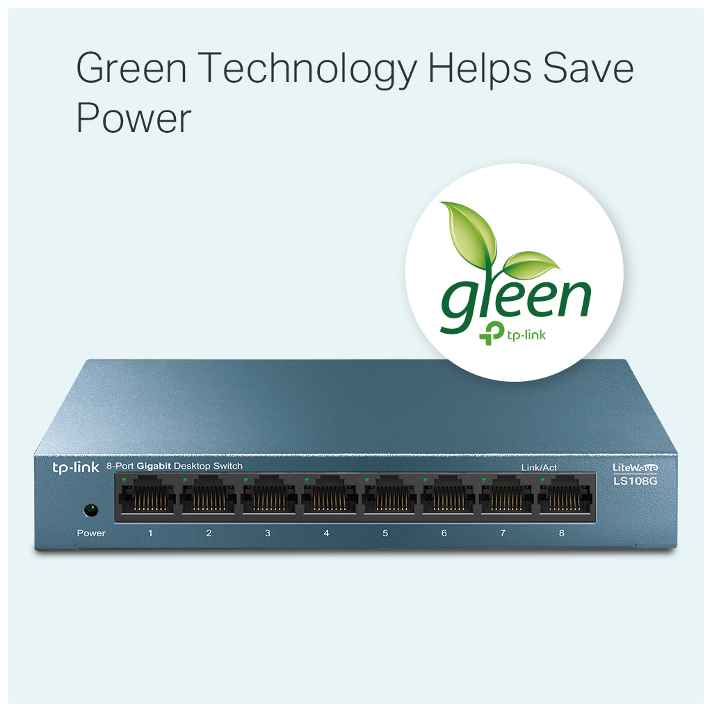 TP-LINK LS108G, Green Tech, 8 Port GigaBit, Yonetilemez, Metal Kasa, Masaustu Switch