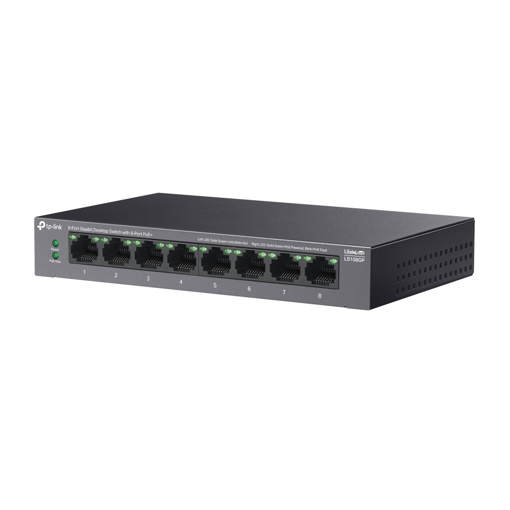 TP-LINK LS108GP, Green Tech, 8 Port GigaBit, PoE 62W, Yonetilemez, Metal Kasali Switch