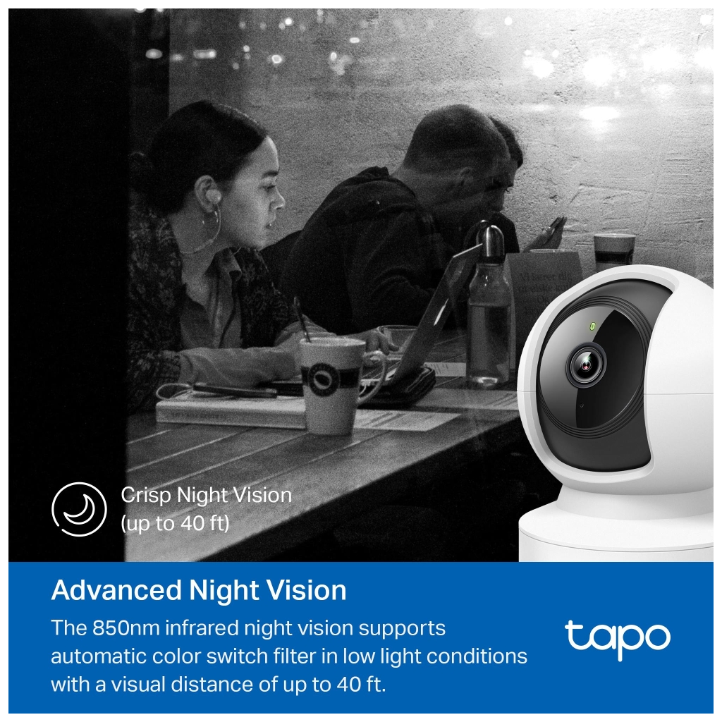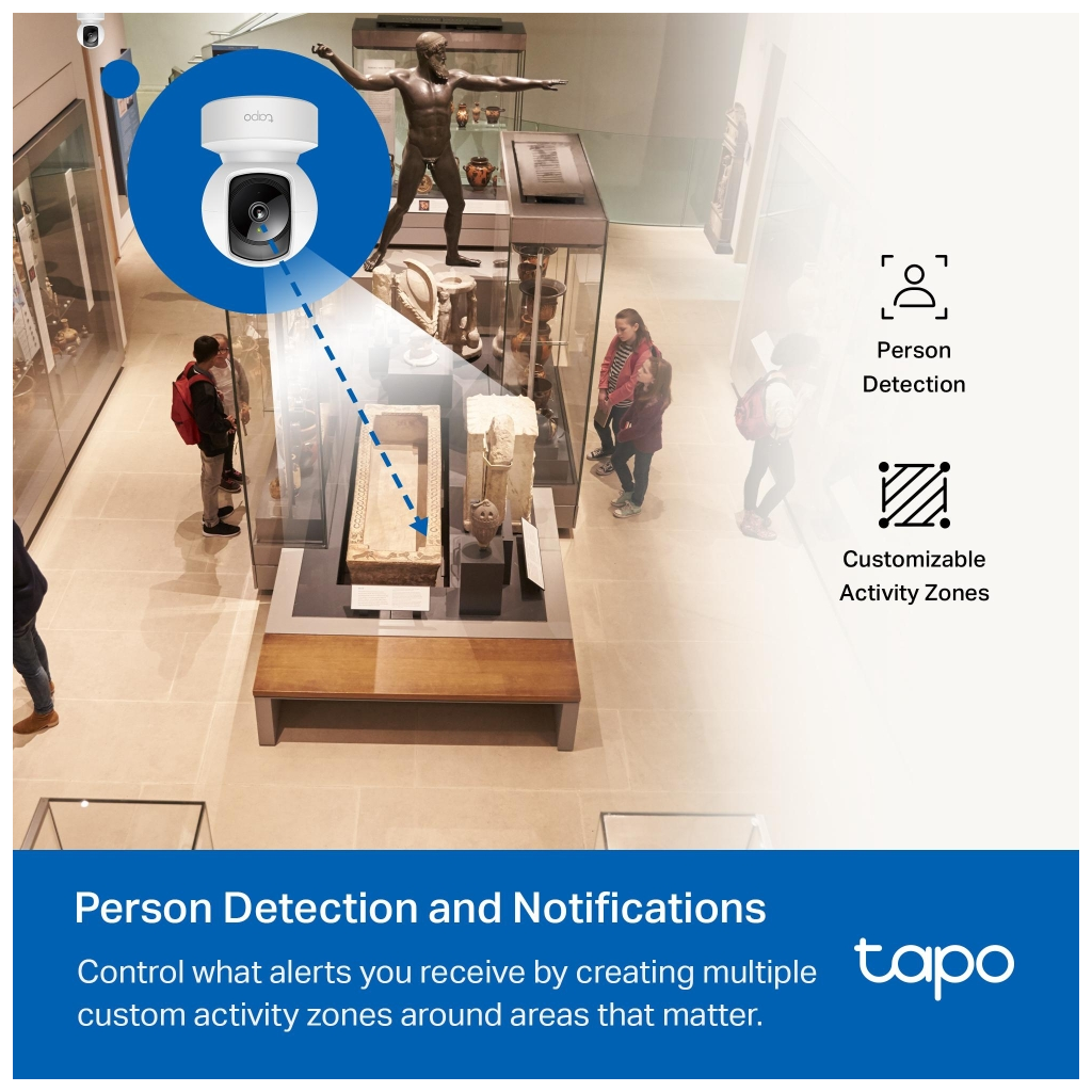TP-LINK Tapo C202, Bebek/Ev Guvenlik Kamerasi, WiFi-Ehernet, 1080P, 12Mt Gece Gorusu, PAN/TILT, iki Yonlu Ses