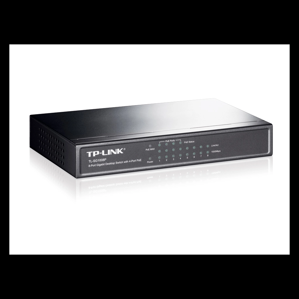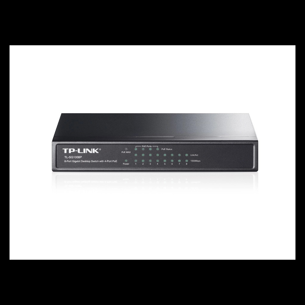 TP-LINK TL-SG1008P, 8 Port, GigaBit, 4 Port PoE, 55W, Yonetilemez, Metal Kasa, Masaustu Switch