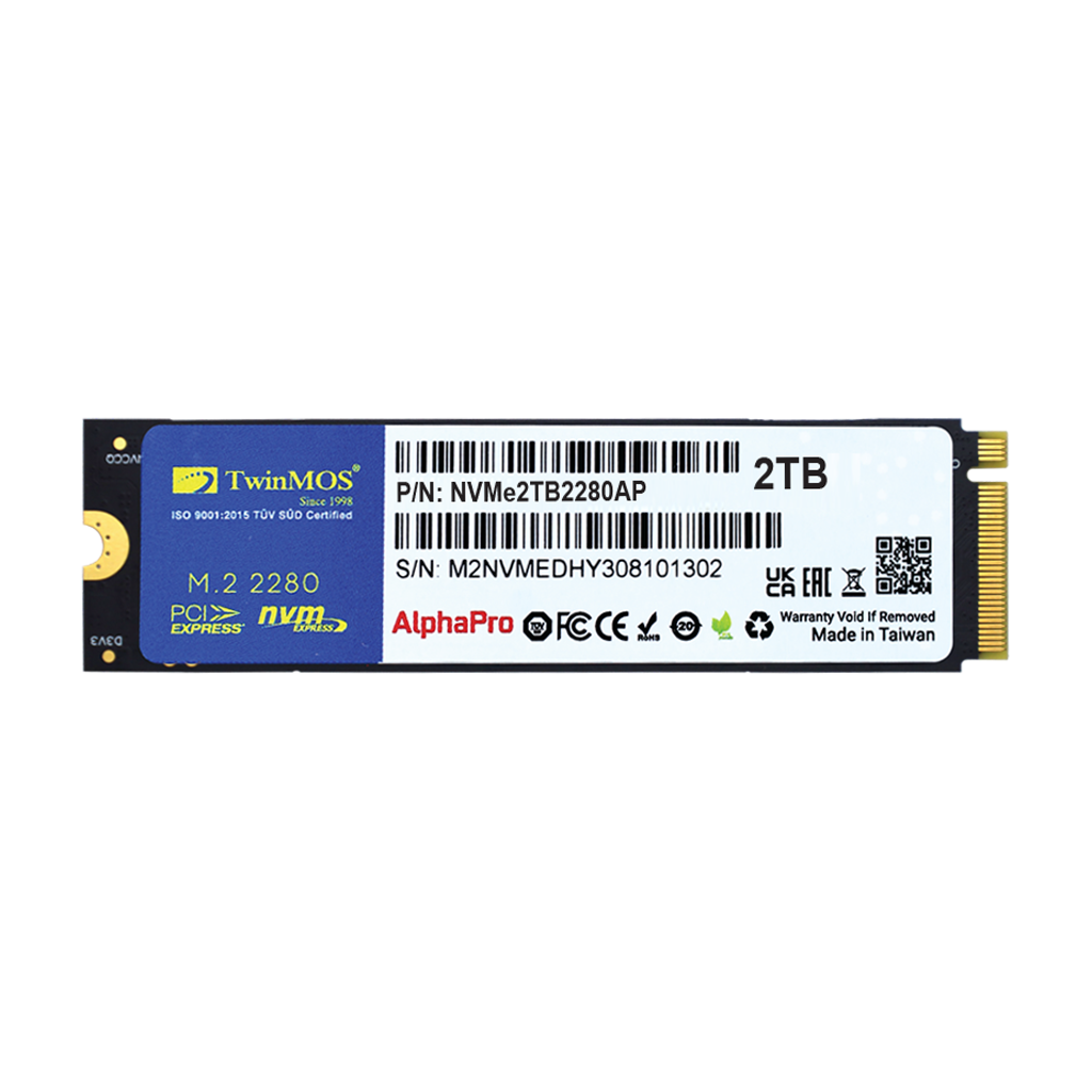 TwinMOS NVMe2TB2280AP, AlphaPro, 2TB, 3600-3250Mb/s, Gen3, NVMe PCIe M.2 2280, SSD, TLC, 3DNAND