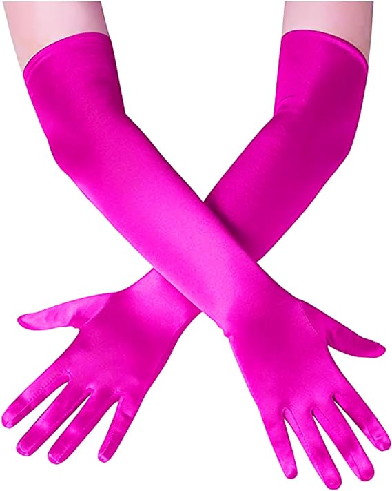 Uzun Boy Ekstra Parlak Saten Eldiven Fusya Renk