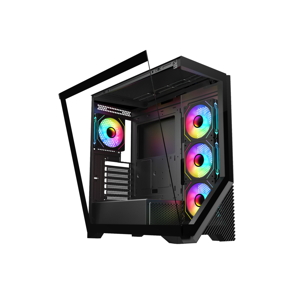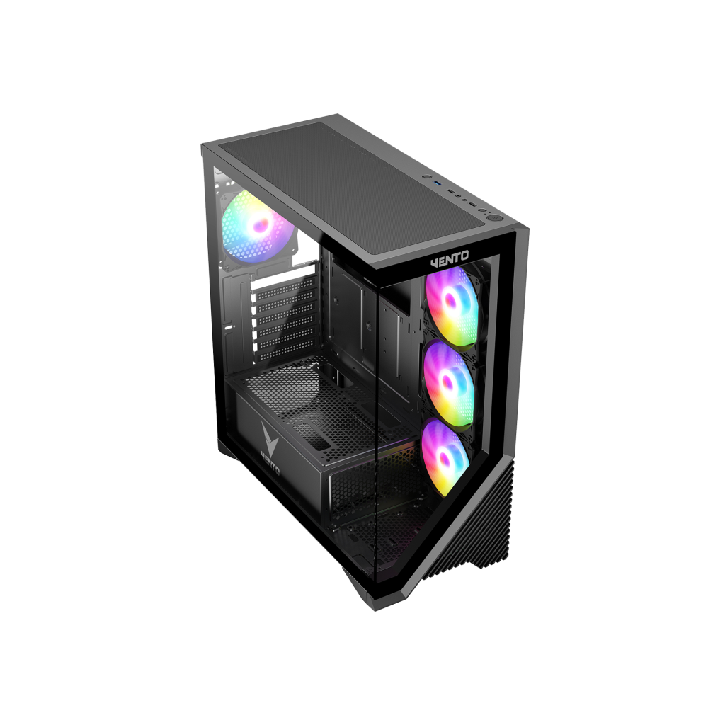 VENTO VG4202FL Mid Tower, 750W 80+ Siyah, Temperli Cam, RGB, ATX GAMING KASA