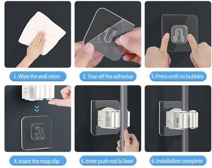 Yapiskanli Pratik Mop Tutucu 4 Adet Beyaz