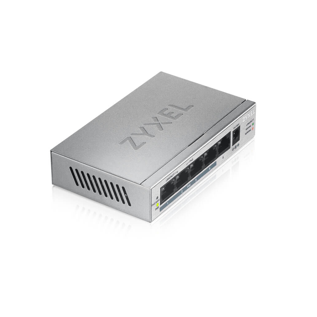 ZyXEL GS1005HP, 5 Port, GigaBit, 4 Port PoE 60W, Yonetilemez, Masaustu Switch